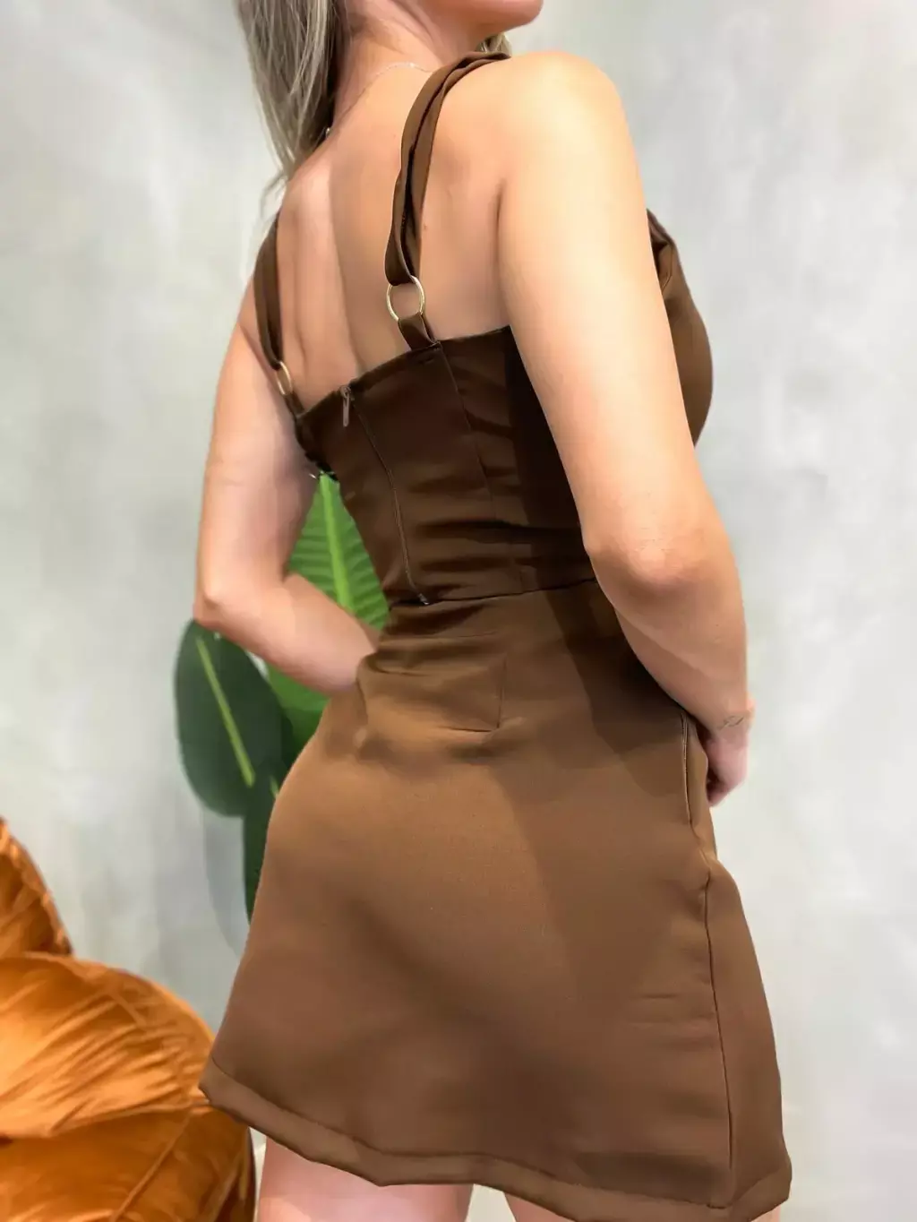 Conjunto Feminino em Alfaiataria Short Saia e Cropped Corset de Alça Rosana